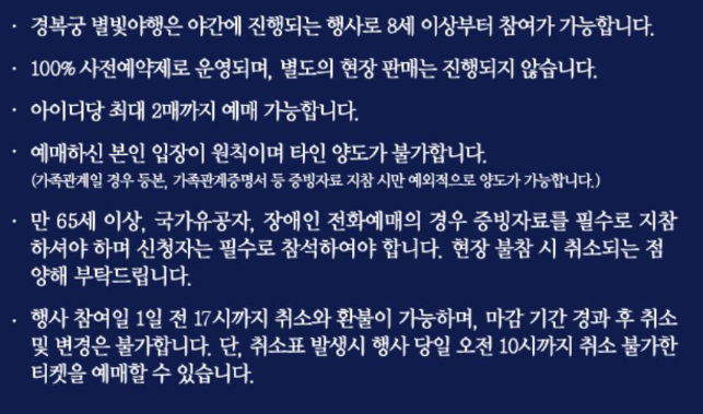 <경복궁 별빛야행>은 행사 전일 17시까지 취소가 가능하며 기간 내 취소 수수료가 부과되지 않습니다.