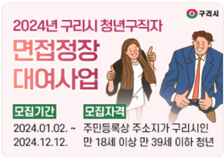 ○ 지원내용 : 청년 구직활동 지원을 위한 면접정장 대여 서비스 제공
