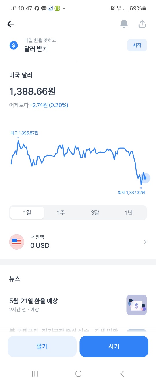 - “팔기” 버튼으로 환율 상승 시 매도