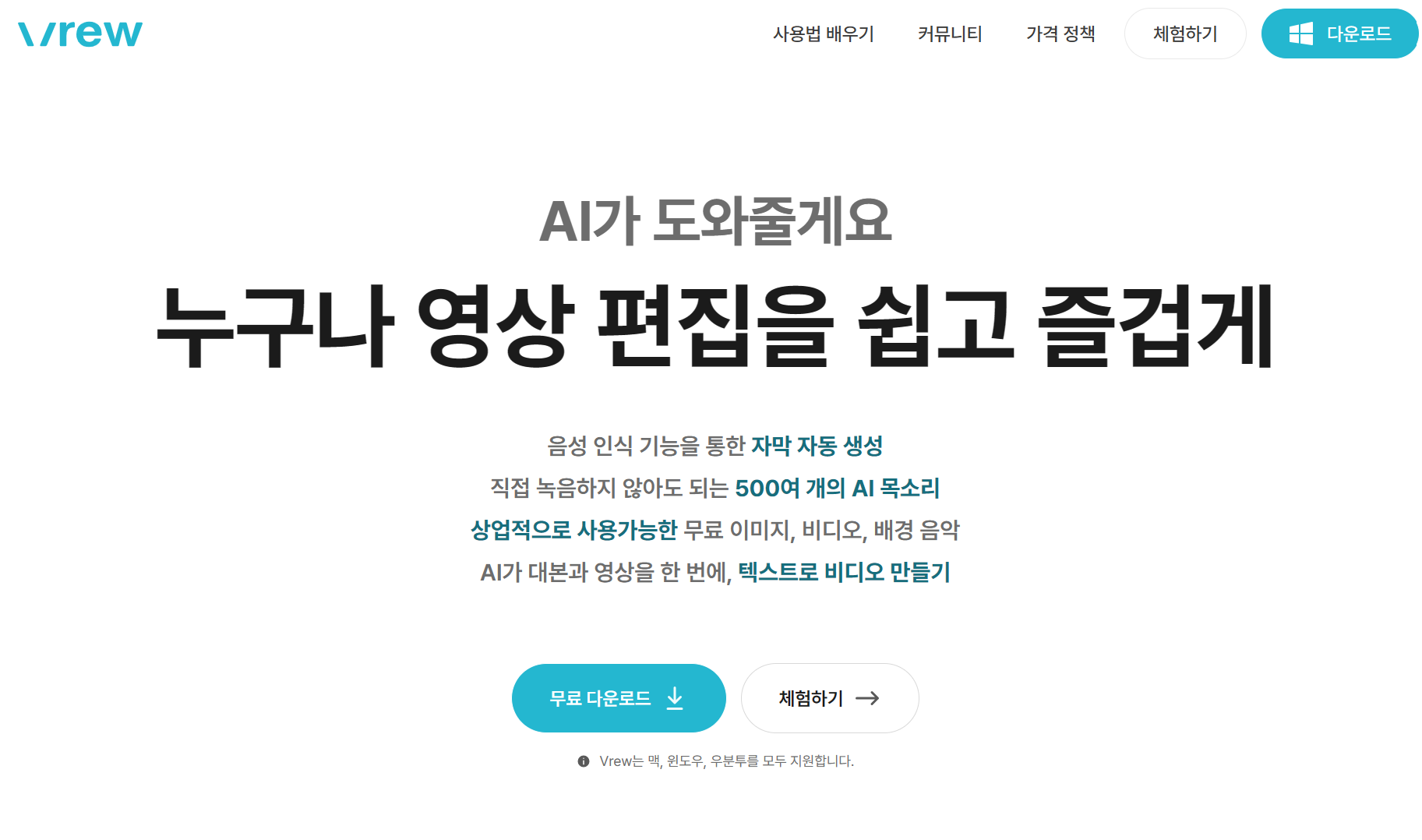 4. Vrew (AI 영상편집)