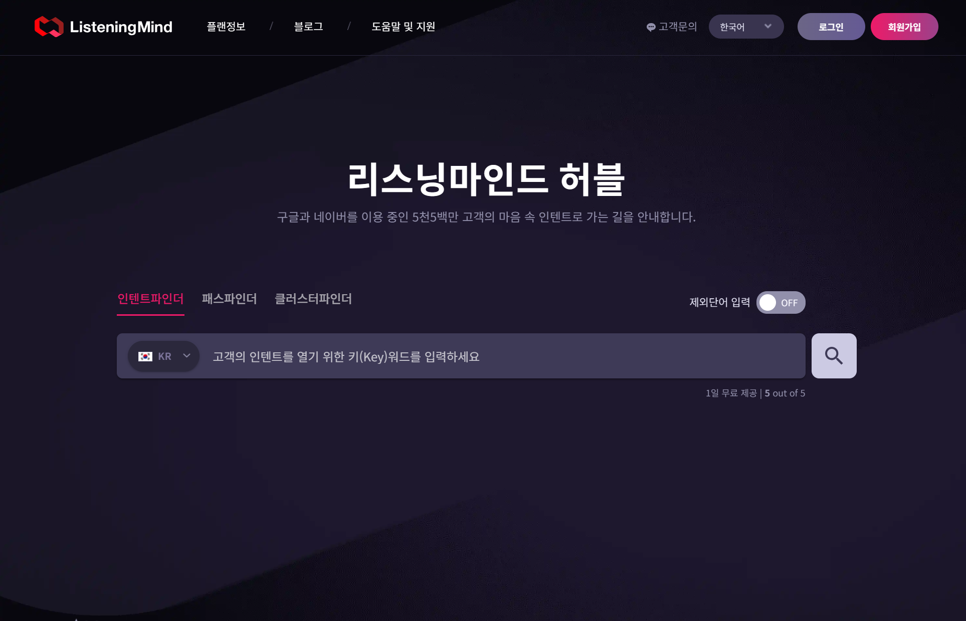 구글과 네이버에서 확보한 검색 데이터를 기반으로 소비자의 관심, 시장 현황, 검색 목적, 검색자 유형, 검색 여정 등의 이사이트를 제공하는 서치 리스닝 솔루션(Search Listening)
