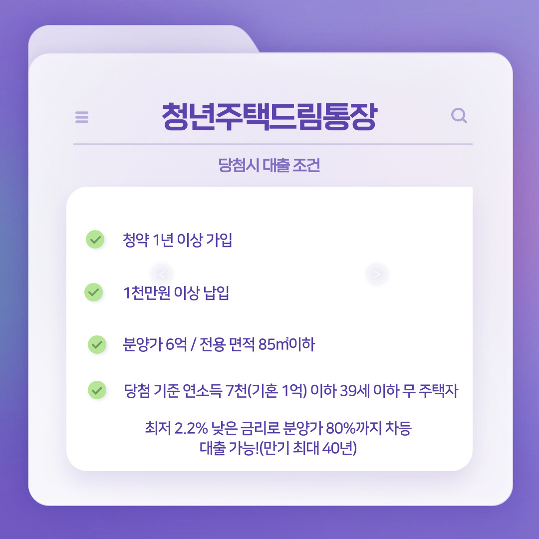 청년주택드림통장 당첨시 대출조건