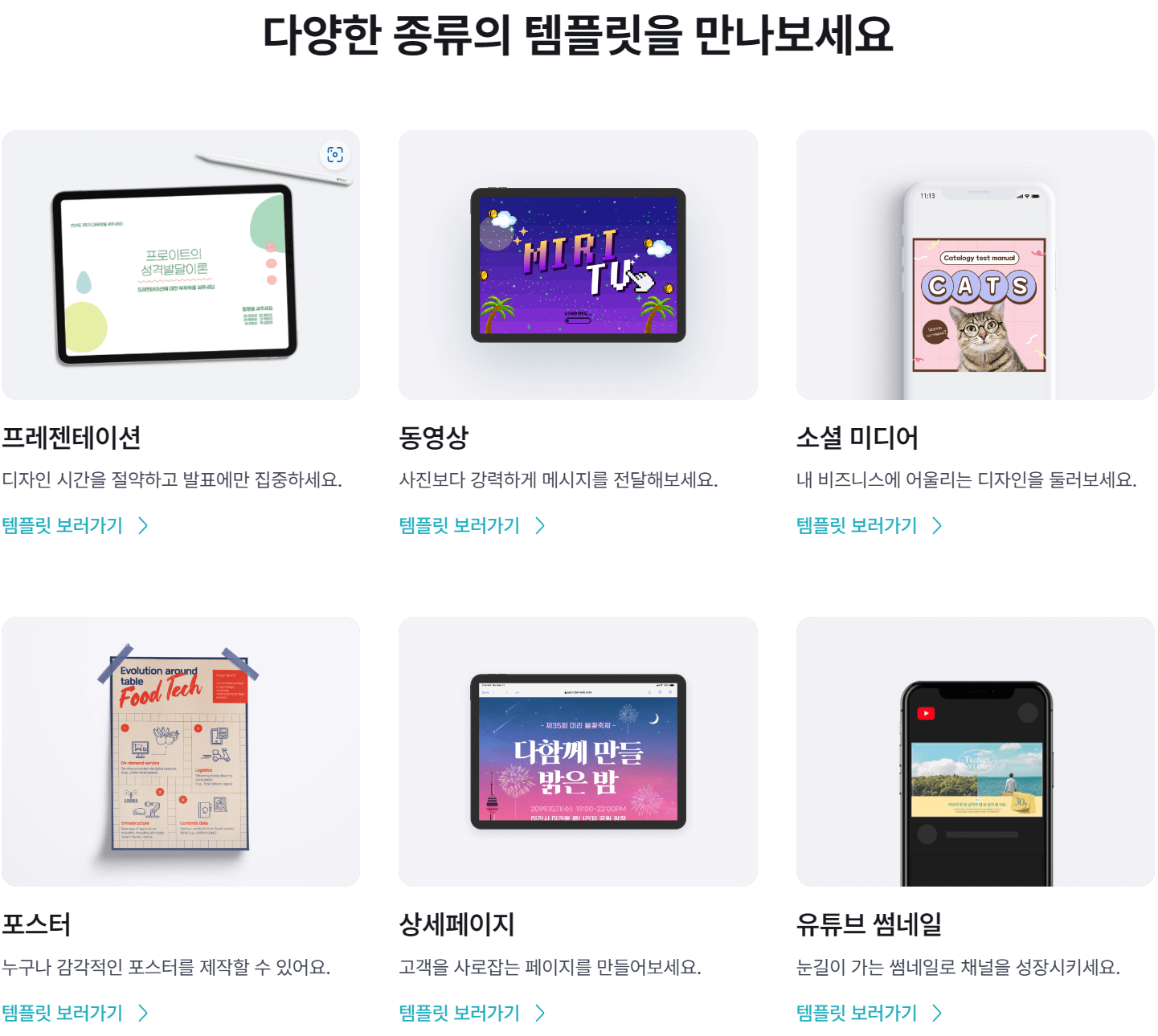 - 5만개 이상의 무료 템플릿 으로 간편하고 편하게 원하는 디자인을 만들수 있다